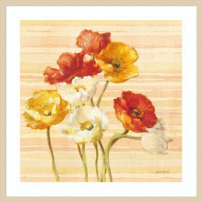 This image depicts a vibrant nature scene with white daisies prominently displayed. Several bees are seen hovering around and landing on the flowers, against a warm yellow background that enhances the bright and lively feel of the artwork. The texture and detail in the petals and bees bring a sense of movement and life to the piece. This framed art print was created by Jade Reynolds and printed by Amanti Art in Madison WI. The print is giclee printed using fade-resistant inks for picture-perfect detail and incredible depth of color and finished with a 100% real wood frame. Individually made using traditional custom framing techniques, it has the quality you would expect from your local frame shop.