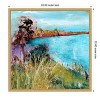 This artwork depicts a vibrant landscape with a view of a large body of water. Lush grasses and foliage adorn the foreground, while a tree and rocky shoreline create depth and texture. The use of bold brushstrokes and vivid colors convey a sense of movement and tranquility. This canvas art print was created by Elan Studios and printed in Waunakee, WI. It is stretched across a solid surface to resist sagging. We use only premium, high-tension canvas. Our exclusive stretching techniques hide corner folds and provide a taut canvas surface. The artwork is authentically licensed. The canvas appears as if it is floating in the frame because it has a narrow gap between the edge of the canvas and the frame. Our canvas items are individually made using traditional custom framing techniques, it has the quality you would expect from your local frame shop.