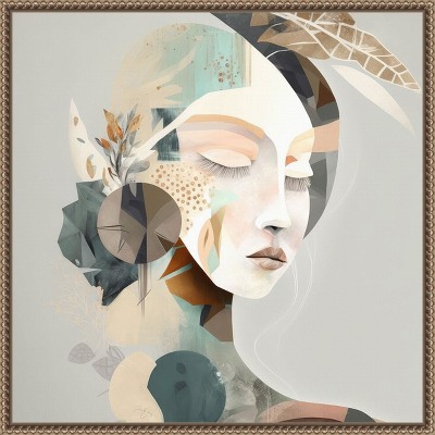 A female figure stands in apparent ease against a deep teal blue background. She is clothed in a rust colored skirt and beige blouse with the sleeves rolled up. A pale cream spattering adds to the casual flair. This canvas art print was created by Moira Hershey and printed in Madison, WI. It is stretched across a solid surface to resist sagging. We use only premium, high-tension canvas. Our exclusive stretching techniques hide corner folds and provide a taut canvas surface. The artwork is authentically licensed. The canvas appears as if it is floating in the frame because it has a narrow gap between the edge of the canvas and the frame. Our canvas items are individually made using traditional custom framing techniques, it has the quality you would expect from your local frame shop.