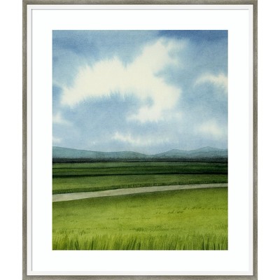 This artwork depicts a charming hillside village overlooking a serene ocean. Vibrant houses in various colors are perched on the rocky cliffs, adding a lively and picturesque atmosphere. In the foreground, lush green plants and purple flowers create a harmonious blend with the natural landscape. This framed art print was created by Petra Lizde and printed by Amanti Art in Madison WI. The print is giclee printed using fade-resistant inks for picture-perfect detail and incredible depth of color and finished with a 100% real wood frame. Individually made using traditional custom framing techniques, it has the quality you would expect from your local frame shop.