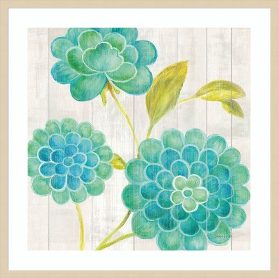 The image depicts a close-up view of a green flower with an intricate and detailed structure. Its numerous, elongated petals radiate outwards, creating a sense of movement and vitality against a light background. This framed art print was created by Danhui Nai and printed by Amanti Art in Madison WI. The print is giclee printed using fade-resistant inks for picture-perfect detail and incredible depth of color and finished with a 100% real wood frame. Individually made using traditional custom framing techniques, it has the quality you would expect from your local frame shop.