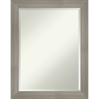 Give your bathroom the finishing touch with this 100% real wood Beveled bathroom mirror. The Cottage Grey Silver frame is a matte finish, rounded, dark grey frame with wood grain pattern and a satin silver outer edge.. The frame is 2.5 in. wide and stands 0.75 in. off the wall. It's Individually made using traditional custom framing techniques, it has the quality you expect from your local frame shop. It holds its value with premium finishing that can be appreciated up close. Because of our attention to detail and focus on artistry, architects, interior designers, and homeowners alike choose this mirror to create beautiful living spaces.