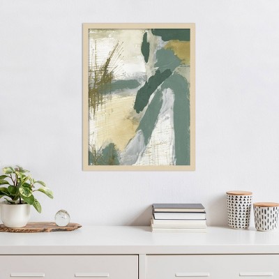 The artwork features geometric shapes and patterns, primarily in shades of green, interspersed with yellow accents. The composition is a structured assembly of lines and angles, creating an abstract, mosaic-like appearance. The play of colors and forms gives the piece a dynamic yet harmonious feel. This framed art print was created by Vanna Lam and printed by Amanti Art in Madison WI. The print is giclee printed using fade-resistant inks for picture-perfect detail and incredible depth of color and finished with a 100% real wood frame. Individually made using traditional custom framing techniques, it has the quality you would expect from your local frame shop.