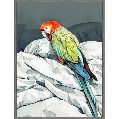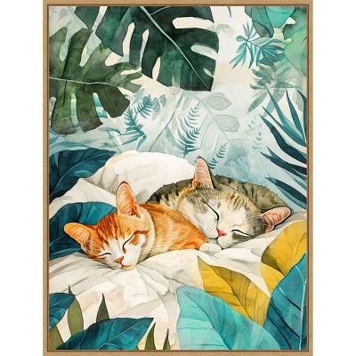 The artwork portrays a dog peacefully sleeping under a floral-patterned blanket. Surrounding the dog are vibrant green leaves, adding a serene, nature-inspired backdrop. The soft colors and gentle composition create a cozy and tranquil atmosphere. This canvas art print was created by Justyna Jaszke and printed in Waunakee, WI. It is stretched across a solid surface to resist sagging. We use only premium, high-tension canvas. Our exclusive stretching techniques hide corner folds and provide a taut canvas surface. The artwork is authentically licensed. The canvas appears as if it is floating in the frame because it has a narrow gap between the edge of the canvas and the frame. Our canvas items are individually made using traditional custom framing techniques, it has the quality you would expect from your local frame shop.