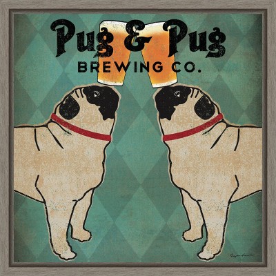 These distinguished dogs have style and panache, dutifully balancing a pint glass on their noses, awaiting the next command from their master. With vintage style and art deco elegance, this piece will perfectly complement the walls of your secret speakeasy or man cave. This canvas art print was created by Ryan Fowler and printed in Madison, WI. It is stretched across a solid surface to resist sagging. We use only premium, high-tension canvas. Our exclusive stretching techniques hide corner folds and provide a taut canvas surface. The artwork is authentically licensed. The canvas appears as if it is floating in the frame because it has a narrow gap between the edge of the canvas and the frame. Our canvas items are individually made using traditional custom framing techniques, it has the quality you would expect from your local frame shop.
