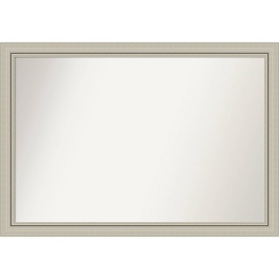 Give your bathroom the finishing touch with this 100% real wood Non-Beveled bathroom mirror. The Driftwood Tan frame is a matte finish, softly scooped tan and grey frame with wood grain pattern and a mottled champagne stepped inner edge.. The frame is 2.75 in. wide and stands 0.75 in. off the wall. It's Individually made using traditional custom framing techniques, it has the quality you expect from your local frame shop. It holds its value with premium finishing that can be appreciated up close. Because of our attention to detail and focus on artistry, architects, interior designers, and homeowners alike choose this mirror to create beautiful living spaces.