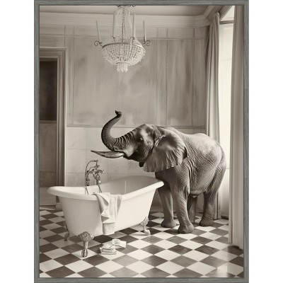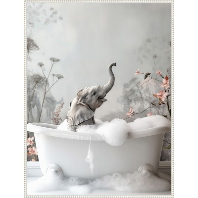 Amanti Art Elephant Bath Bliss by Niky Rahner Canvas Wall Art Print Framed 32-in. W x 42-in. H.