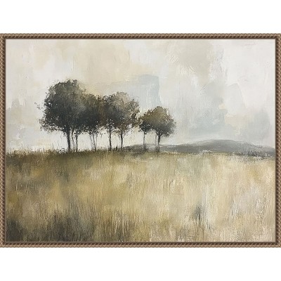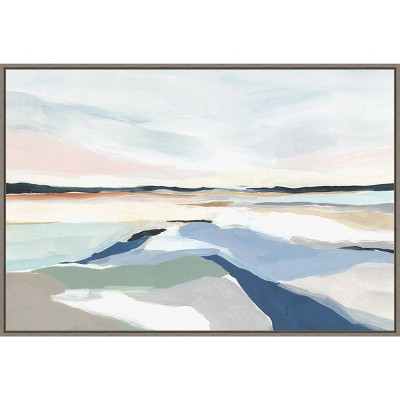 The artwork depicts a serene landscape painted in watercolor, featuring a calm horizon and expansive greenery. The brushstrokes create a minimalistic yet tranquil atmosphere, blending gentle shades of green and blue. The sky is lightly touched with soft clouds, enhancing the peaceful ambiance. This canvas art print was created by Ethan Harper and printed in Waunakee, WI. It is stretched across a solid surface to resist sagging. We use only premium, high-tension canvas. Our exclusive stretching techniques hide corner folds and provide a taut canvas surface. The artwork is authentically licensed. The canvas appears as if it is floating in the frame because it has a narrow gap between the edge of the canvas and the frame. Our canvas items are individually made using traditional custom framing techniques, it has the quality you would expect from your local frame shop.
