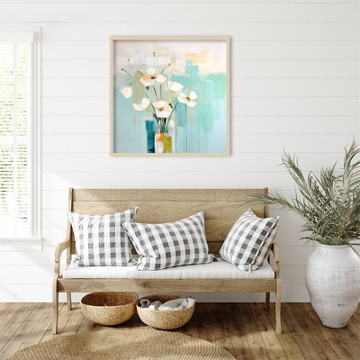 This piece is an abstract watercolor painting of a misty autumn forest, with colorful leaves swirling from the trees and scattered across the ground. The colors are warm and vibrant, with a modern expression of autumn. This canvas art print was created by Ishita Banerjee and printed in Madison, WI. It is stretched across a solid surface to resist sagging. We use only premium, high-tension canvas. Our exclusive stretching techniques hide corner folds and provide a taut canvas surface. The artwork is authentically licensed. The canvas appears as if it is floating in the frame because it has a narrow gap between the edge of the canvas and the frame. Our canvas items are individually made using traditional custom framing techniques, it has the quality you would expect from your local frame shop.