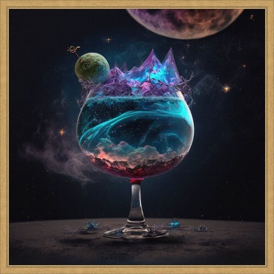 The artwork features a fantastical black horse adorned with intricate, golden detailing that enhances its regal appearance. Its mane flows in a swirling mix of fiery oranges and cool blues, creating a vivid and ethereal aura. The dynamic composition and vibrant colors evoke a sense of power and otherworldly majesty. This canvas art print was created by Jake Fouracre and printed in Waunakee, WI. It is stretched across a solid surface to resist sagging. We use only premium, high-tension canvas. Our exclusive stretching techniques hide corner folds and provide a taut canvas surface. The artwork is authentically licensed. The canvas appears as if it is floating in the frame because it has a narrow gap between the edge of the canvas and the frame. Our canvas items are individually made using traditional custom framing techniques, it has the quality you would expect from your local frame shop.