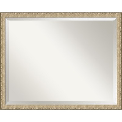Give your home or office the finishing touch with this 100% real wood Beveled Wall Mirror. The frame features an ornate, antique gold frame with red highlights and a grey patina. This frame is distinguished by its raised-leaf rococo pattern.. The frame is 2 in. wide and stands 1 in. off the wall. Individually made using traditional custom framing techniques, it has the quality you would expect from your local frame shop.