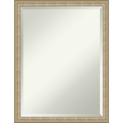 Give your home or office the finishing touch with this 100% real wood Beveled Wall Mirror. The frame features an ornate, antique gold frame with red highlights and a grey patina. This frame is distinguished by its raised-leaf rococo pattern.. The frame is 2 in. wide and stands 1 in. off the wall. Individually made using traditional custom framing techniques, it has the quality you would expect from your local frame shop.