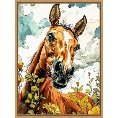 Amanti Art Giraffes Sharing a Drink by Andreas Magnusson Canvas Wall Art Print Framed 18-in. W x 24-in. H.