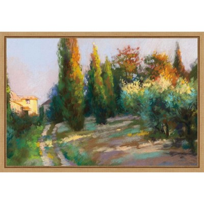 In this artwork, a serene woodland scene emerges from a misty fog, with towering trees and intricate botanical silhouettes. The golden hues add a touch of enchantment to the natural beauty, creating a captivating and tranquil atmosphere. This canvas art print was created by Kate Bennett and printed in Madison, WI. It is stretched across a solid surface to resist sagging. We use only premium, high-tension canvas. Our exclusive stretching techniques hide corner folds and provide a taut canvas surface. The artwork is authentically licensed. The canvas appears as if it is floating in the frame because it has a narrow gap between the edge of the canvas and the frame. Our canvas items are individually made using traditional custom framing techniques, it has the quality you would expect from your local frame shop.