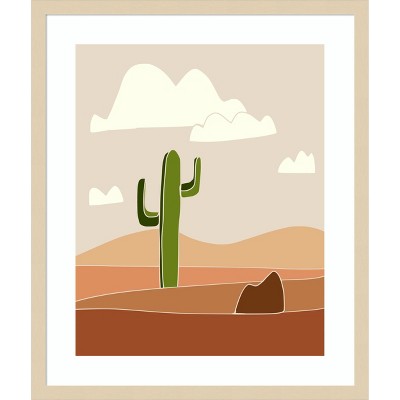 The image showcases a cactus with sharp spines growing in a decorative terracotta pot. The pot features subtle floral engravings and is bathed in warm sunlight. The green of the cactus contrasts against the earthy tones of the pot, creating a vibrant yet natural look. This framed art print was created by Raisa Zwart and printed by Amanti Art in Madison WI. The print is giclee printed using fade-resistant inks for picture-perfect detail and incredible depth of color and finished with a 100% real wood frame. Individually made using traditional custom framing techniques, it has the quality you would expect from your local frame shop.