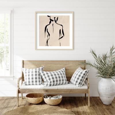 The image depicts an abstract design with fine black ink lines creating layers of flowing, leaf-like shapes. The artwork maintains a minimalistic and modern aesthetic with a neutral beige background, emphasizing the intricate line work and organic forms. This framed art print was created by Dan Hobday and printed by Amanti Art in Madison WI. The print is giclee printed using fade-resistant inks for picture-perfect detail and incredible depth of color and finished with a 100% real wood frame. Individually made using traditional custom framing techniques, it has the quality you would expect from your local frame shop.