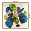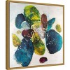 The artwork features a dynamic composition of large, organic shapes in rich blues, greens, and reds against a light background. These shapes are textured with splashes and dots of contrasting colors, creating a sense of movement. The abstract nature of the painting evokes a lively and energetic atmosphere. This canvas art print was created by Joyce Combs and printed in Waunakee, WI. It is stretched across a solid surface to resist sagging. We use only premium, high-tension canvas. Our exclusive stretching techniques hide corner folds and provide a taut canvas surface. The artwork is authentically licensed. The canvas appears as if it is floating in the frame because it has a narrow gap between the edge of the canvas and the frame. Our canvas items are individually made using traditional custom framing techniques, it has the quality you would expect from your local frame shop.