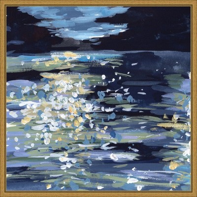 The artwork presents an abstract landscape with a rich play of colors. The foreground features varied shades of green suggesting grass or fields, while the middle ground transitions into a vibrant yellow, hinting at hills or mountains. Above, a textured blue sky completes the serene scene, evoking a sense of tranquility. This canvas art print was created by Alicia Longley and printed in Waunakee, WI. It is stretched across a solid surface to resist sagging. We use only premium, high-tension canvas. Our exclusive stretching techniques hide corner folds and provide a taut canvas surface. The artwork is authentically licensed. The canvas appears as if it is floating in the frame because it has a narrow gap between the edge of the canvas and the frame. Our canvas items are individually made using traditional custom framing techniques, it has the quality you would expect from your local frame shop.