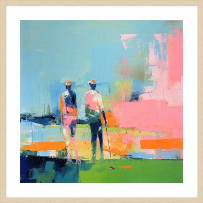 The artwork presents an abstract landscape with a rich play of colors. The foreground features varied shades of green suggesting grass or fields, while the middle ground transitions into a vibrant yellow, hinting at hills or mountains. Above, a textured blue sky completes the serene scene, evoking a sense of tranquility. This framed art print was created by Alicia Longley and printed by Amanti Art in Madison WI. The print is giclee printed using fade-resistant inks for picture-perfect detail and incredible depth of color and finished with a 100% real wood frame. Individually made using traditional custom framing techniques, it has the quality you would expect from your local frame shop.