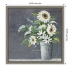 This still-life painting perfectly captures the moment of collecting that last lush summer bouquet as the season comes to an end. Fresh white daisies, sunflowers and eucalyptus blooms are perfectly arranged in a simple galvanized metal vase. The bright white flowers cut a striking contrast against the modern gray background. This canvas art print was created by Julia Purinton and printed in Madison, WI. It is stretched across a solid surface to resist sagging. We use only premium, high-tension canvas. Our exclusive stretching techniques hide corner folds and provide a taut canvas surface. The artwork is authentically licensed. The canvas appears as if it is floating in the frame because it has a narrow gap between the edge of the canvas and the frame. Our canvas items are individually made using traditional custom framing techniques, it has the quality you would expect from your local frame shop.