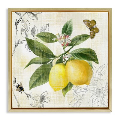 Stems of bright yellow lemons seemingly drip from the branches of a citrus tree. A white-streaked, midnight blue background provides an eye pleasing contrast to the golden fruit. The green leaves nicely complement both the yellow and blue colors. This canvas art print was created by Julia Purinton and printed in Madison, WI. It is stretched across a solid surface to resist sagging. We use only premium, high-tension canvas. Our exclusive stretching techniques hide corner folds and provide a taut canvas surface. The artwork is authentically licensed. The canvas appears as if it is floating in the frame because it has a narrow gap between the edge of the canvas and the frame. Our canvas items are individually made using traditional custom framing techniques, it has the quality you would expect from your local frame shop.