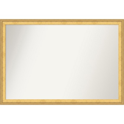 Give your bathroom the finishing touch with this 100% real wood Non-Beveled bathroom mirror. The Lila Gold frame is a rounded, classic gold frame with a decorative raised pattern and light distressing.. The frame is 1.5 in. wide and stands 1.75 in. off the wall. It's Individually made using traditional custom framing techniques, it has the quality you expect from your local frame shop. It holds its value with premium finishing that can be appreciated up close. Because of our attention to detail and focus on artistry, architects, interior designers, and homeowners alike choose this mirror to create beautiful living spaces.