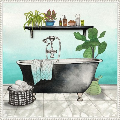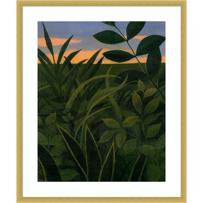 Amanti Art Line Leaves In Vase On Navy I by Elizabeth Medley Wood Framed Wall Art Print 21 in. x 25 in.