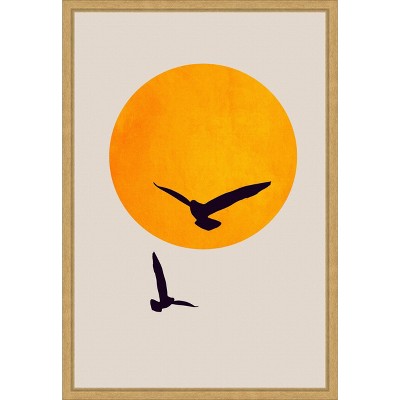 The artwork features two stylized vases, one in black and the other in orange, with simple line-drawn leaves emerging from them. The composition is minimalistic and modern, emphasizing the contrast between the bold vase colors and the delicate line work. The background is a neutral, light shade, adding to the piece's minimalist appeal. This canvas art print was created by Eins Kubistika and printed in Waunakee, WI. It is stretched across a solid surface to resist sagging. We use only premium, high-tension canvas. Our exclusive stretching techniques hide corner folds and provide a taut canvas surface. The artwork is authentically licensed. The canvas appears as if it is floating in the frame because it has a narrow gap between the edge of the canvas and the frame. Our canvas items are individually made using traditional custom framing techniques, it has the quality you would expect from your local frame shop.