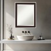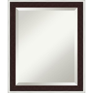 Give your bathroom the finishing touch with this Beveled bathroom mirror. The Maya Espresso Silver frame is an angled brown frame with espresso wood grain and a satin silver outer edge. The frame is 2 in. wide and stands 1.75 in. off the wall. It's Individually made using traditional custom framing techniques, it has the quality you expect from your local frame shop. It holds its value with premium finishing that can be appreciated up close. Because of our attention to detail and focus on artistry, architects, interior designers, and homeowners alike choose this mirror to create beautiful living spaces.