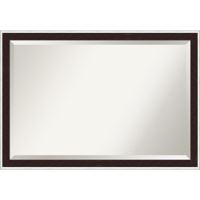 Give your bathroom the finishing touch with this Non-Beveled bathroom mirror. The Maya Espresso Silver frame is an angled brown frame with espresso wood grain and a satin silver outer edge. The frame is 2 in. wide and stands 1.75 in. off the wall. It's Individually made using traditional custom framing techniques, it has the quality you expect from your local frame shop. It holds its value with premium finishing that can be appreciated up close. Because of our attention to detail and focus on artistry, architects, interior designers, and homeowners alike choose this mirror to create beautiful living spaces.