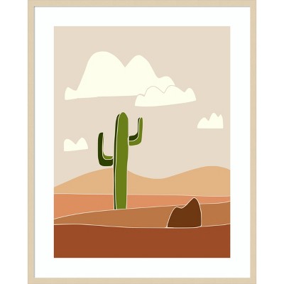 Amanti Art Mid Century Breeze Block Wall with Cactus by Tom Windeknecht Wood Framed Wall Art Print 25 in. x 25 in.