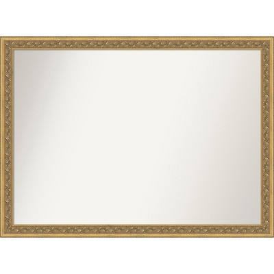 Give your bathroom the finishing touch with this 100% real wood Non-Beveled bathroom mirror. The Mila Dark Gold frame is a narrow dark gold frame featuring elegant embossed detailing and a gracefully curved inner lip for a refined, classic look.. The frame is 1 in. wide and stands 1.25 in. off the wall. It's Individually made using traditional custom framing techniques, it has the quality you expect from your local frame shop. It holds its value with premium finishing that can be appreciated up close. Because of our attention to detail and focus on artistry, architects, interior designers, and homeowners alike choose this mirror to create beautiful living spaces.