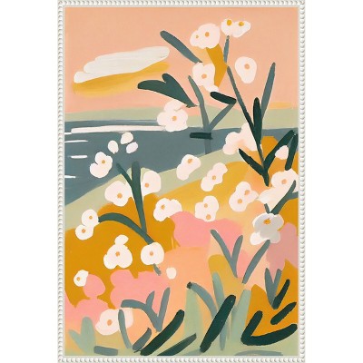 The image showcases an abstract painting featuring large, geometric color blocks. The painting predominantly uses shades of red, orange, and peach with a small section of gray at the bottom left corner. The colors appear to blend seamlessly, creating a modern and minimalist aesthetic. This canvas art print was created by Jay Stanley and printed in Waunakee, WI. It is stretched across a solid surface to resist sagging. We use only premium, high-tension canvas. Our exclusive stretching techniques hide corner folds and provide a taut canvas surface. The artwork is authentically licensed. The canvas appears as if it is floating in the frame because it has a narrow gap between the edge of the canvas and the frame. Our canvas items are individually made using traditional custom framing techniques, it has the quality you would expect from your local frame shop.