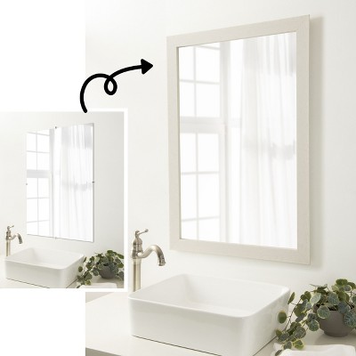 Amanti Art Mirror Makeover Bathroom Mirror Frame Border Kit to add a frame to a 16x26 inch mirror - Mirror NOT Included - Trio White Wash Silver Trim