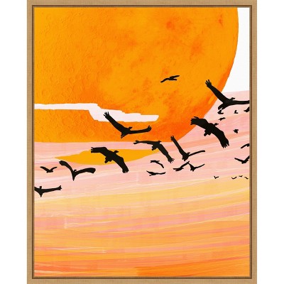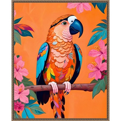 Five playful monkeys are seated around two tables in a vibrant, tropical setting, enjoying drinks. The scene is depicted in bold colors with lush greenery surrounding the gathering. The monkeys are animated and appear to be enjoying a lively conversation. This canvas art print was created by Uma Gokhale and printed in Waunakee, WI. It is stretched across a solid surface to resist sagging. We use only premium, high-tension canvas. Our exclusive stretching techniques hide corner folds and provide a taut canvas surface. The artwork is authentically licensed. The canvas appears as if it is floating in the frame because it has a narrow gap between the edge of the canvas and the frame. Our canvas items are individually made using traditional custom framing techniques, it has the quality you would expect from your local frame shop.