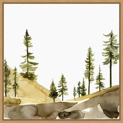 The artwork depicts a serene landscape featuring towering mountains reflected in a tranquil lake. Lush green pine trees line the shore, enhancing the natural beauty. The sky's vivid blue complements the green tones of the landscape, evoking a sense of peace. This framed art print was created by Walker Noble and printed by Amanti Art in Madison WI. The print is giclee printed using fade-resistant inks for picture-perfect detail and incredible depth of color and finished with a 100% real wood frame. Individually made using traditional custom framing techniques, it has the quality you would expect from your local frame shop.