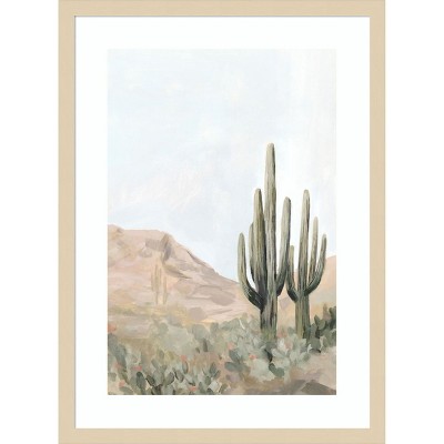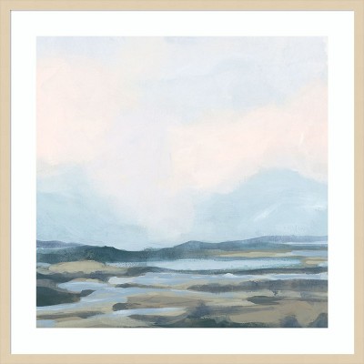 The image depicts an abstract landscape painting. The artwork features soft and muted tones, primarily in shades of beige, brown, and light cream. Brush strokes blend together to create a serene and calming atmosphere, with undefined shapes suggesting a natural scene, evoking a sense of tranquility and open space. The overall style is minimalistic and contemporary, making it a suitable piece for modern interior decor. This framed art print was created by June Erica Vess and printed by Amanti Art in Madison WI. The print is giclee printed using fade-resistant inks for picture-perfect detail and incredible depth of color and finished with a 100% real wood frame. Individually made using traditional custom framing techniques, it has the quality you would expect from your local frame shop.