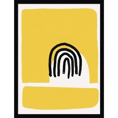 This abstract artwork features a large yellow circle resembling the sun, setting against a beige backdrop framed by earthy tones. A bold green plant shape contrasts strikingly with an orange form that suggests sand dunes. The composition evokes a minimalist desert landscape with a modern touch. This framed art print was created by Melissa Wang and printed by Amanti Art in Madison WI. The print is giclee printed using fade-resistant inks for picture-perfect detail and incredible depth of color and finished with a 100% real wood frame. Individually made using traditional custom framing techniques, it has the quality you would expect from your local frame shop.