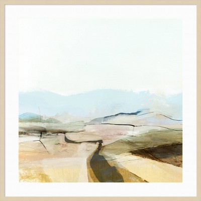 This watercolor painting depicts a vast field under a dramatic sky filled with dynamic clouds. The horizon is lined with lush greenery contrasting with the golden tones of the field. The artwork captures a serene and refreshing natural scene. This framed art print was created by Paul Mccreery and printed by Amanti Art in Madison WI. The print is giclee printed using fade-resistant inks for picture-perfect detail and incredible depth of color and finished with a 100% real wood frame. Individually made using traditional custom framing techniques, it has the quality you would expect from your local frame shop.