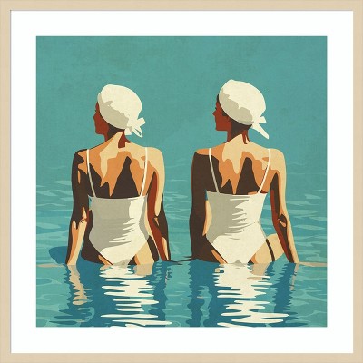 The artwork depicts a minimalist abstract landscape with gentle, flowing curves. A crescent moon hangs in the sky above rolling hills in earthy tones of brown and blue. The composition highlights geometric patterns and a textured appearance, evoking a sense of calm and serenity. This framed art print was created by Arctic Frame and printed by Amanti Art in Madison WI. The print is giclee printed using fade-resistant inks for picture-perfect detail and incredible depth of color and finished with a 100% real wood frame. Individually made using traditional custom framing techniques, it has the quality you would expect from your local frame shop.