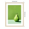 The image depicts a single green pear placed upright on a light green surface against a darker green background. The pear is detailed, with visible speckles, and the overall composition exudes a minimalist, modern aesthetic. The simplicity and monochromatic green tones make it ideal for contemporary wall decor, particularly suited for kitchens or dining areas. This framed art print was created by Andreas Magnusson and printed by Amanti Art in Madison WI. The print is giclee printed using fade-resistant inks for picture-perfect detail and incredible depth of color and finished with a 100% real wood frame. Individually made using traditional custom framing techniques, it has the quality you would expect from your local frame shop.