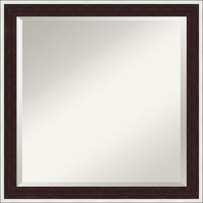 Give your bathroom the finishing touch with this Beveled bathroom mirror. The Pia Medium Brown frame is a classic brown wood grain pattern frame with a matte finish, a deep scooped profile, and a tall flat outer edge. The frame is 2.5 in. wide and stands 1.75 in. off the wall. It's Individually made using traditional custom framing techniques, it has the quality you expect from your local frame shop. It holds its value with premium finishing that can be appreciated up close. Because of our attention to detail and focus on artistry, architects, interior designers, and homeowners alike choose this mirror to create beautiful living spaces.