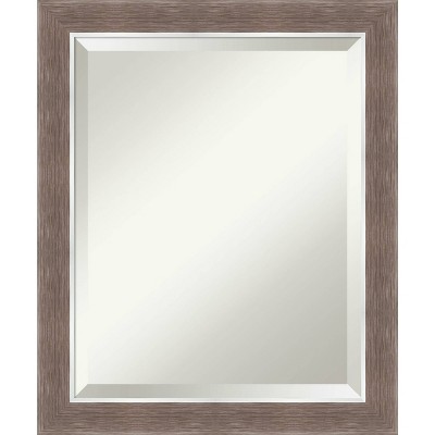 Give your bathroom the finishing touch with this Beveled bathroom mirror. The Pia Medium Brown Narrow frame is a classic narrow brown wood grain pattern frame with a satin finish, a deep scooped profile, and a tall flat outer edge. The frame is 1.75 in. wide and stands 1.25 in. off the wall. It's Individually made using traditional custom framing techniques, it has the quality you expect from your local frame shop. It holds its value with premium finishing that can be appreciated up close. Because of our attention to detail and focus on artistry, architects, interior designers, and homeowners alike choose this mirror to create beautiful living spaces.