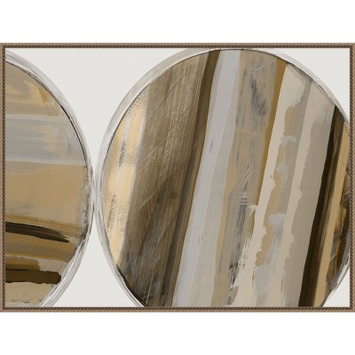 This artwork features two overlapping circles filled with earthy tones, including beige, gray, and brown. Both circles are adorned with vertical and diagonal stripes, creating a textured and layered effect. The composition exudes a minimalist and modern aesthetic with its clean lines and neutral color palette. This framed art print was created by Cartissi and printed by Amanti Art in Madison WI. The print is giclee printed using fade-resistant inks for picture-perfect detail and incredible depth of color and finished with a 100% real wood frame. Individually made using traditional custom framing techniques, it has the quality you would expect from your local frame shop.