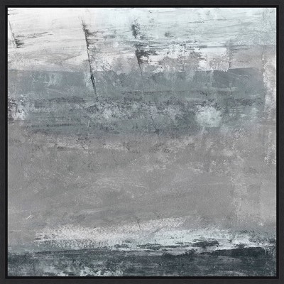 The image consists of an abstract composition featuring geometric shapes and blocks of muted colors including green, orange, black, and gray. The artwork has a textured appearance, reminiscent of weathered surfaces. The color blocks and shapes intersect and overlay each other, creating a balanced yet dynamic visual. The style evokes a modern, minimalist aesthetic with a mid-century modern influence. This canvas art print was created by Little Dean and printed in Waunakee, WI. It is stretched across a solid surface to resist sagging. We use only premium, high-tension canvas. Our exclusive stretching techniques hide corner folds and provide a taut canvas surface. The artwork is authentically licensed. The canvas appears as if it is floating in the frame because it has a narrow gap between the edge of the canvas and the frame. Our canvas items are individually made using traditional custom framing techniques, it has the quality you would expect from your local frame shop.