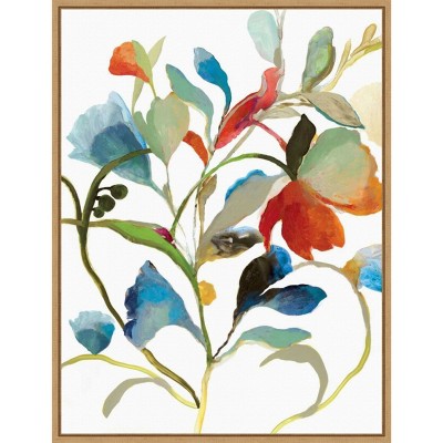 Green and gold silhouettes of leaves on branches are the featured player of this painting. Background branches and leaves are less saturated in color, fading into the background. This picture gives the impression of looking through a window into a foggy day. This canvas art print was created by Jennifer Goldberger and printed in Madison, WI. It is stretched across a solid surface to resist sagging. We use only premium, high-tension canvas. Our exclusive stretching techniques hide corner folds and provide a taut canvas surface. The artwork is authentically licensed. The canvas appears as if it is floating in the frame because it has a narrow gap between the edge of the canvas and the frame. Our canvas items are individually made using traditional custom framing techniques, it has the quality you would expect from your local frame shop.