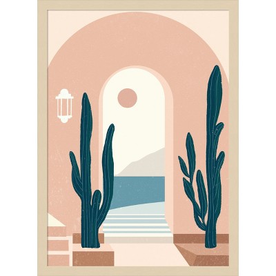 The artwork features a minimalistic illustration of cherry blossoms on a branch. The delicate flowers are outlined in black against a backdrop of soft pink and gray circles. The composition combines elegance and simplicity, emphasizing the beauty of nature. This framed art print was created by Samira Yanushkova and printed by Amanti Art in Madison WI. The print is giclee printed using fade-resistant inks for picture-perfect detail and incredible depth of color and finished with a 100% real wood frame. Individually made using traditional custom framing techniques, it has the quality you would expect from your local frame shop.