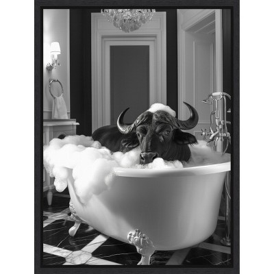 The artwork shows two seals playfully lounging in a vintage-style bathtub filled with bubbles. The background features floral wallpaper, adding a whimsical and charming touch to the scene. This delightful composition combines the natural elegance of seals with a quirky, domestic setting. This canvas art print was created by Niky Rahner and printed in Waunakee, WI. It is stretched across a solid surface to resist sagging. We use only premium, high-tension canvas. Our exclusive stretching techniques hide corner folds and provide a taut canvas surface. The artwork is authentically licensed. The canvas appears as if it is floating in the frame because it has a narrow gap between the edge of the canvas and the frame. Our canvas items are individually made using traditional custom framing techniques, it has the quality you would expect from your local frame shop.