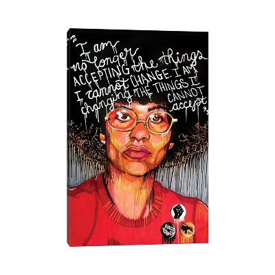 This artwork features a classical profile of a figure that appears to be inspired by Greek sculpture. The subject is adorned with a leafy crown and has a serene expression, rendered in a sepia tone. Text in Greek appears alongside the portrait, along with some numerical inscriptions at the bottom. This canvas art print was created by Annie Warren and printed in Waunakee, WI. The canvas is stretched by hand and finished with a float frame. Individually made using traditional custom framing techniques, it has the quality you would expect from your local frame shop.