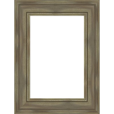 FRAME DETAILS: The 3 inch wide Shipwreck Greywash frame is a wide, dark brown frame with a distressed grey-washed finish and weathered pockmark details.